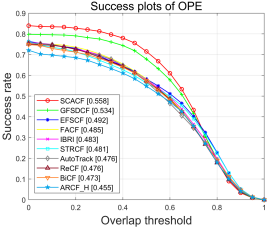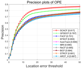 属性 | SCACF | GFSDCF | FACF | AutoTrack | ARCF_H | ReCF | IBRI | BiCF | EFSCF | STRCF |