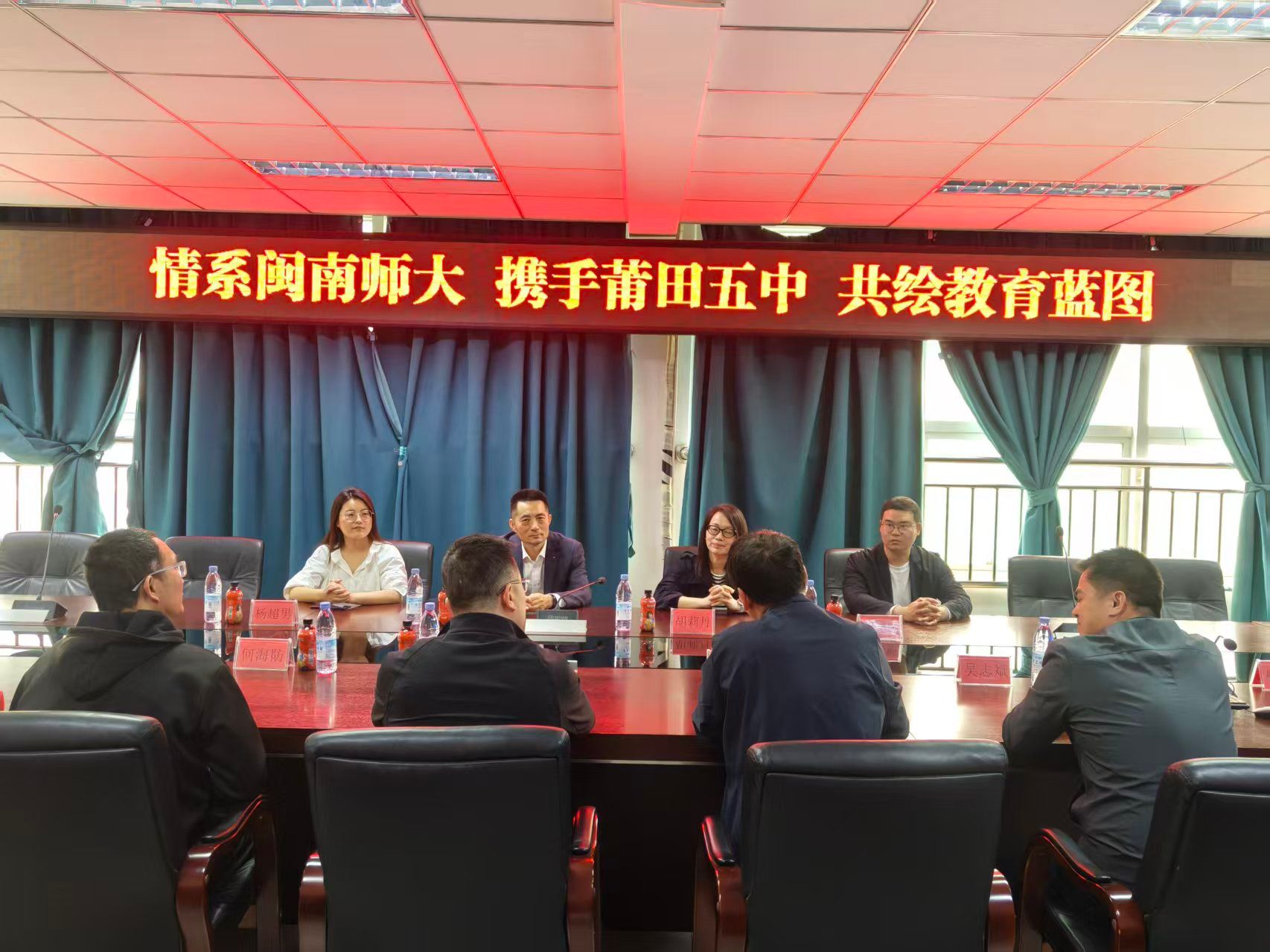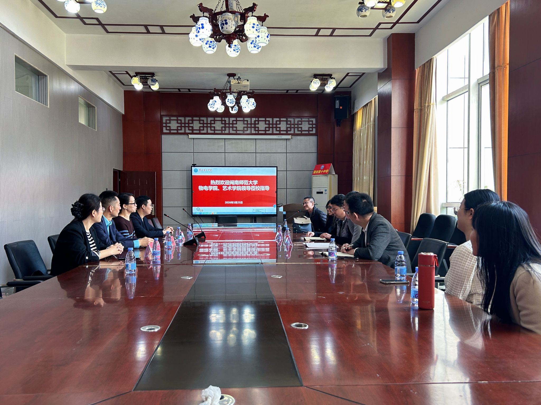 在莆田五中、莆田十中,校方领导们陪同参观了校园环境、教学设施及特色教学中心。双方围绕师资培训、师范生培养、实习就业等议题开展座谈交流,在校校友们也列席座谈并建言献策,聚焦物理教育趋势与人才供需痛点,达成协同育人共识,既凝聚了合作合力,也进一步拉近了校友情谊。