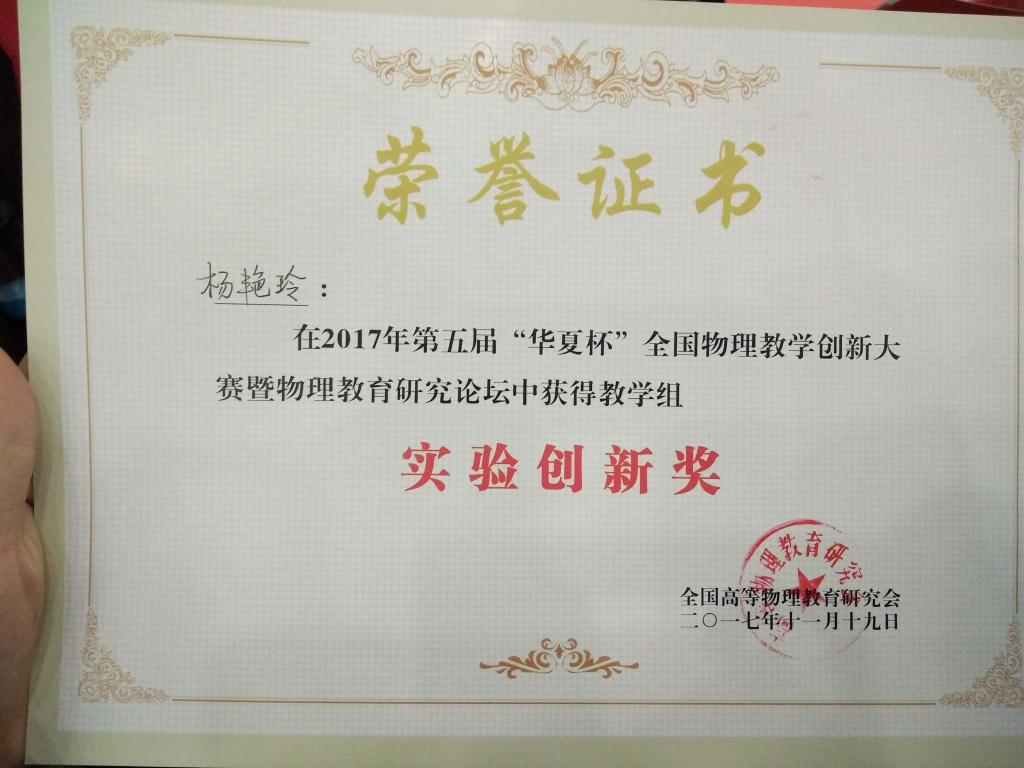 本次物理教学创新大赛分研究生和本科生组。由付丽萍老师指导的研究生组卞艺玲、杨艳玲同学分别荣获一等奖,杨晓彤、林婷婷、周晓涓同学分获三等奖;由黄永顺老师指导的本科生组黄艺琳、林桂华、何玉馨同学荣获二等奖。在本次比赛中,杨艳玲同学还荣获“实验创新奖”,该奖在研究生组中只有三名同学获得,充分展示物信学院学科物理研究生教学实践的能力。最后,我校还被大赛组委评为“优秀组织奖”。