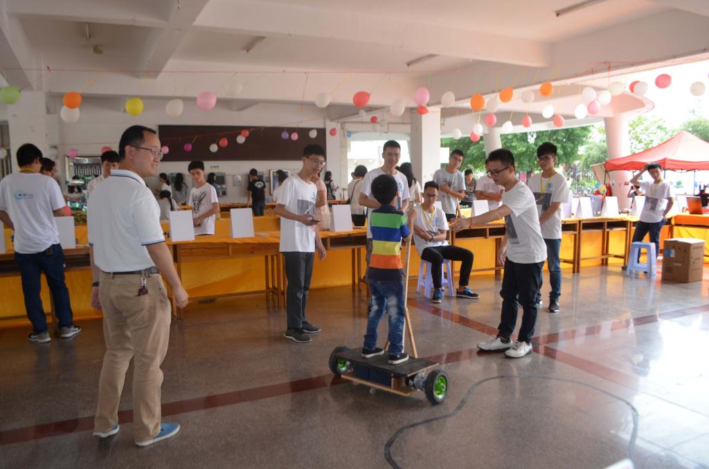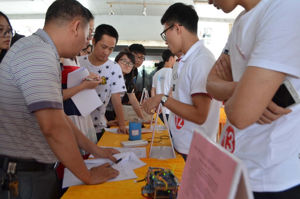 每一个活动区域都有很多学生驻足停留,细细品味。其中,电子设计作品展区和创意作品展区的优秀作品引发了不少称赞,特别是多功能平台车,它的外形上是具有三轮载人载物平台,可以通过人为的控制来实现转弯行走等功能,看着新鲜不已,吸引了许多人的观赏与试验。还有与之齐名的基于ht32f1656的3D打印机也让人觉得眼前一亮,不禁要感叹这神奇的物理世界。除了这些作品,还有其他让人印象深刻的作品。在现场采访中,就有老师对利利浦公司的副总裁表示,他对基于单片机的多功能直尺这项设计颇为赏识,他觉得同学们能设计出这种具有实验功能,具有可行性的产品,是很有发展眼光的,还强调了这种设计应该多多鼓励,并且他认为此次物理大观园的举办很有意义,能够激发学生的实验创新能力,提高实践能力。