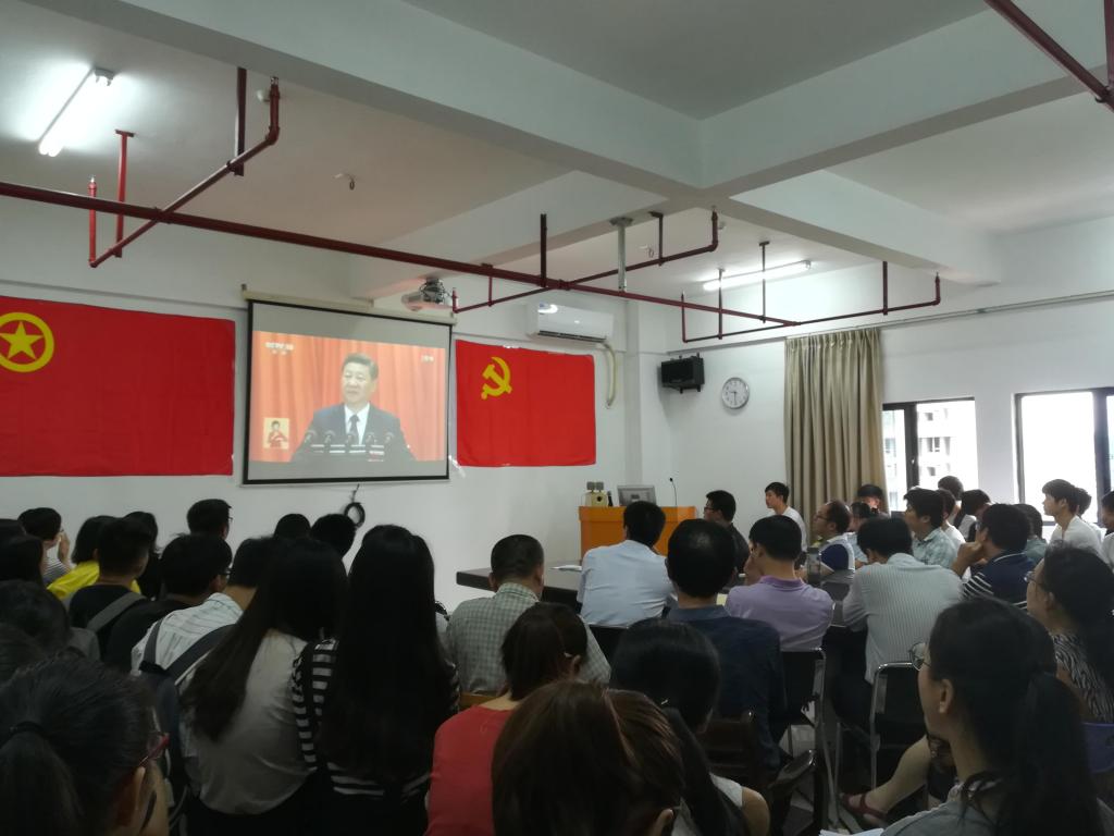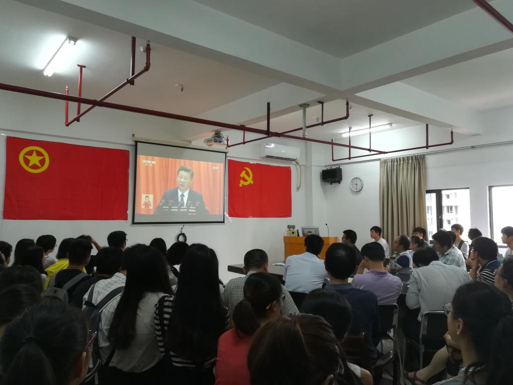 10月18日上午九时,中国共产党第十九届全国代表大会在北京人民大会堂顺利召开。yl23455永利集团组织了老师和同学一起在科技楼907会议室观看十九大的开幕盛典。