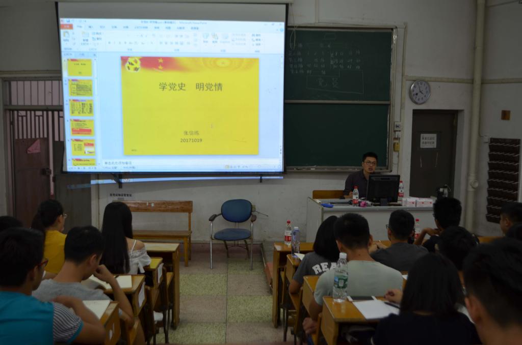 随后张信练老师开展了有关“学党史、明党情”的专题培训课,向大家讲述了历史就在我们身边,这使同学们系统地了解了党自成立以来的发展过程和发展历史。他还对知识点进行了充分的拓展,让整堂课不仅条理清晰而且更贴近生活。在本次活动的开展过程中,大家都认真地汲取知识,做好课堂笔记。