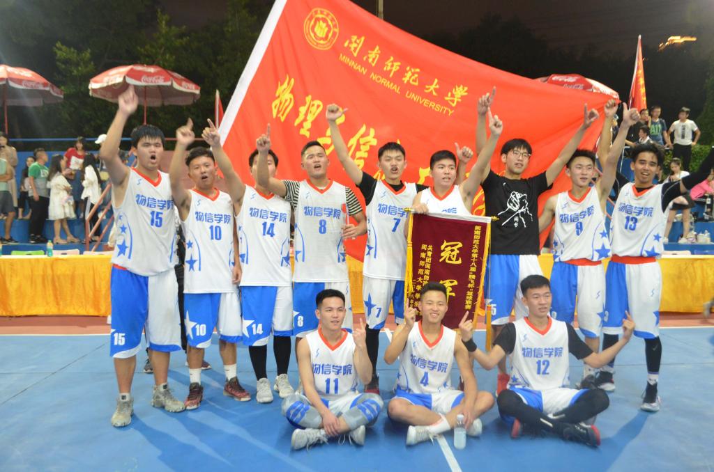 在短暂的中场休息后第三节物信学院更是势如破竹,全队配合默契,渐渐拉大与商学院的比分,商学院也奋起直追,精彩镜头不断切换,双方精彩的三分球更是让大家尖叫不断。篮球击地有力的声音、厚重的鼓声、观众的掌声交相辉映,成为了队员们奋起进攻的动力,第三节物信学院仍占上风。随后第四节在紧张的气氛中开始了,商学院铆足了劲,三分球后又投入了一个球,现场开始沸腾,比分渐渐拉近,物信学院也高度集中精力,从容不迫。在剩下不多的时间,物信学院领先一分。比赛进入白热化,场上只剩8秒钟,球回到商学院手中,在观众的倒计时声中,商学院投出了最后一个球,球与球框擦肩而过。哨声吹起,比赛结束,比分定格在75:76,物信学院勇夺冠军,全场欢呼声、尖叫声、呐喊声不断,大家为这一刻的胜利发出最骄傲的呐喊与欢呼。