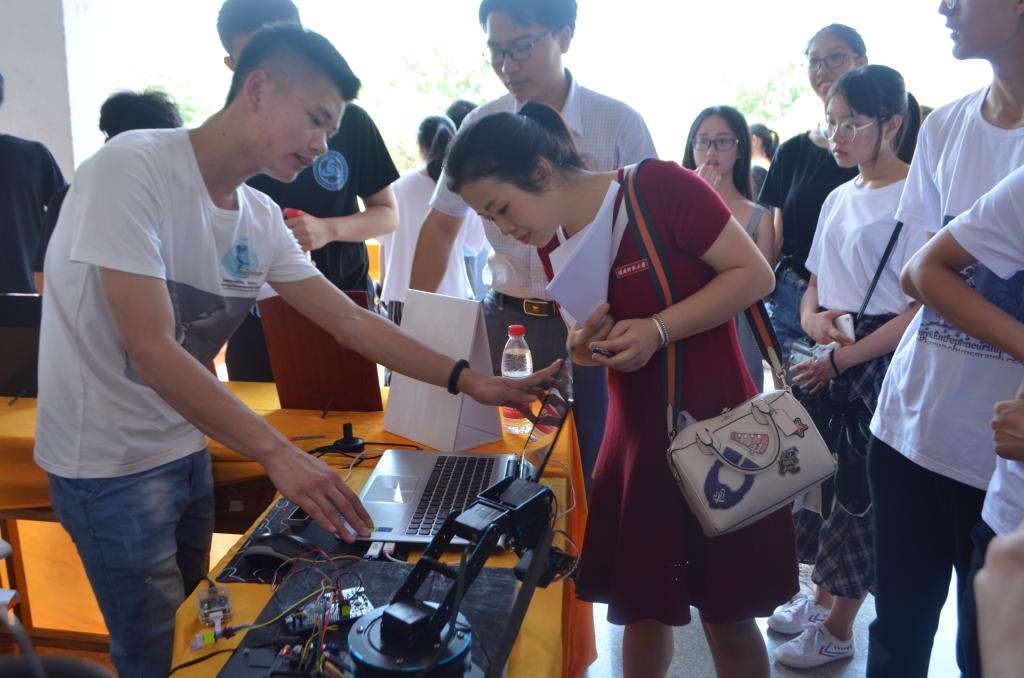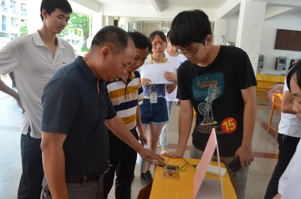 表彰之后,游园活动正式开始。游园活动共设有六个活动区:电子设计作品展区,物理教具展区,创意作品展区,画伞展区,科普大篷车展区,是科维互动区。其中,电子设计作品展区和创意作品展区的优秀作品让大家惊叹称奇。以HT32F1656芯片为主控器的“手势识别机械臂”,通过手势传感器采集数据,让机械臂完成抓取功能以及三维旋转,让人眼前一亮;“安全健康智能卫浴”,让科技点亮生活;“土楼模型”迷你精致,展现漳州特色与传统……一件件作品各具千秋,令观众流连忘返,为神奇的物理世界击掌赞叹。最热闹的要数科普大篷车展区和科维互动区。玩游戏,学科普,各种游戏机、VR体验、泡泡龙、乐高积木,更是吸引了大批大小游客参与互动。