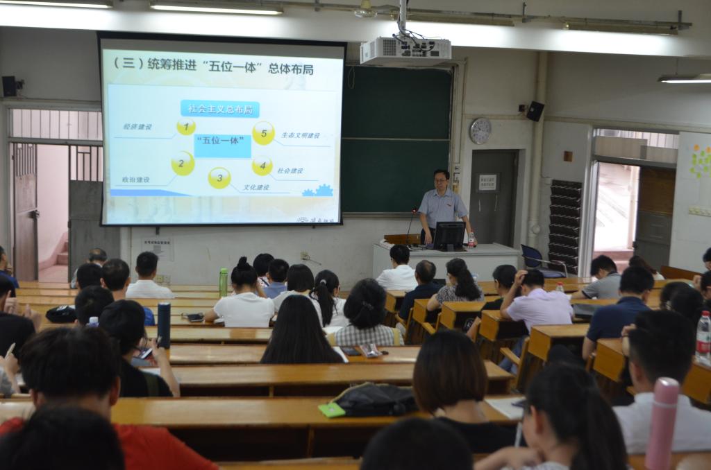 6月14日15时30分,马克思主义学院何孟飞教授应邀到我院开展了主题为《用习近平新时代中国特色社会主义思想武装头脑指导思想》的讲座。我院全体教师及学生党员、预备党员在达南106室聆听了此次讲座。