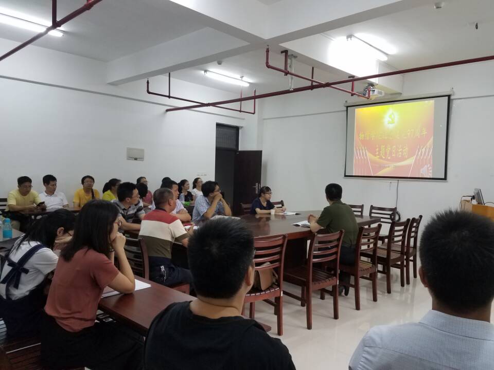6月30日,物信学院全体教工党员齐聚一堂,唱响《没有共产党就没有新中国》,学院党委书记张跃聪致辞,重温党史,引导广大教工党员深入学习贯彻习近平新时代中国特色社会主义思想和党的十九大精神,继承和发扬党的光荣传统和优良作风,“不忘初心跟党走,牢记使命建新功”,为谱写闽师新篇章、实现新时代党的历史使命不懈奋斗。接着,全体党员同志观看了《榜样的力量》《建党伟业》,向榜样看齐,见贤思齐,进一步坚定信心、激发活力、鼓舞干劲,为实现中华民族伟大复兴的“中国梦”奋勇拼搏、砥砺前行。