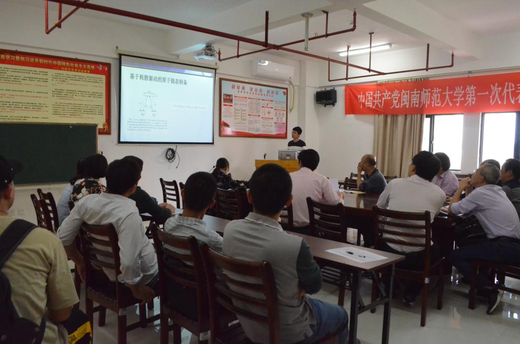 10月24日15时,厦门大学嘉庚学院陈铭锋博士应我院邀约,在科技信息楼北907室开展了主题为《开放系统中的稳态和几何相位研究》的讲座。我院院学术委员会、教学委员会成员、教师参加了此次讲座。