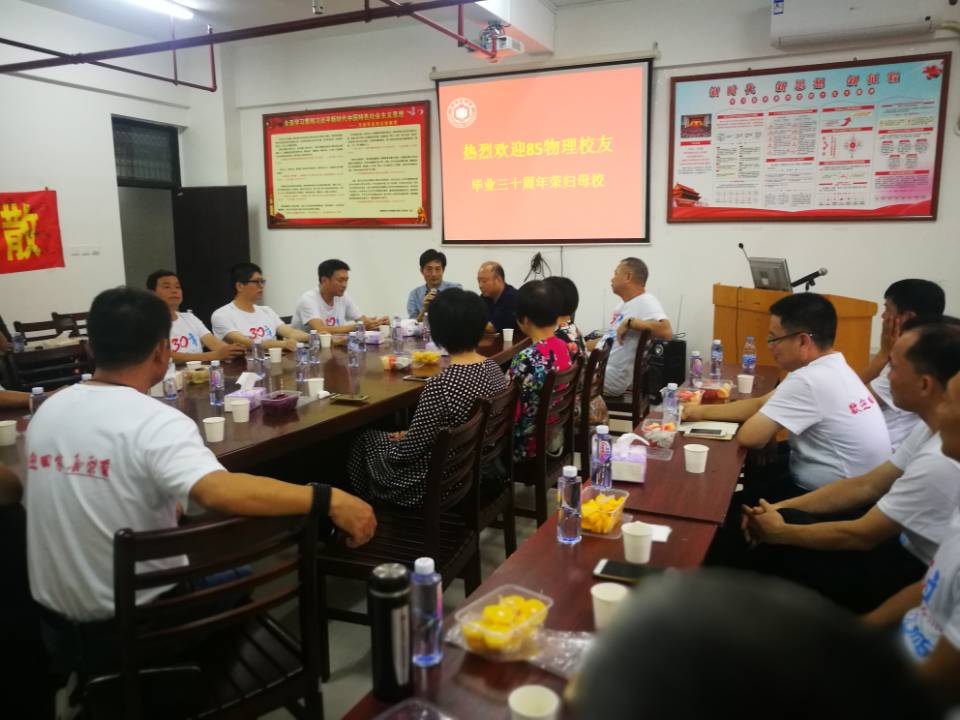 2018年11月17日下午,正值yl23455永利集团即将迎来60周年华诞之际,85物理30多名校友毕业三十周年齐聚科技楼北区907,重温校园时光,分享奋斗故事,展望美好人生。物信学院院长周小方,学院党委主持工作副书记、副院长杨红和参加了校友座谈会。