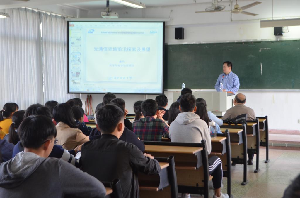 11月30日10时,华中科技大学光学与信息学院副院长唐明教授,应我院邀请在博西410室举行了主题为《光通信领域前沿探索及展望》的学术讲座。