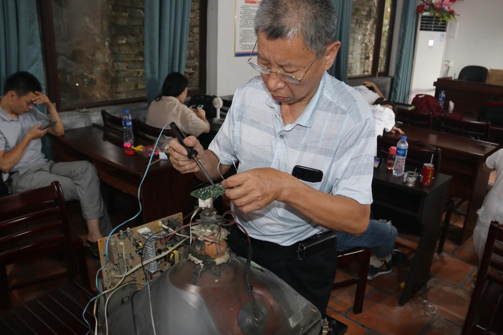 物信学院实践队发挥专业特色、学以致用,开展了“义务家电维修”“趣味实验小课堂“科普游戏互动”“课外科技作品展”等活动。义务维修开始后,维修队运用了他们娴熟的技术为当地村民带来便携,前来维修家电的人络绎不绝,那些损坏的电扇、洗衣机、电磁炉、电饭煲……在这里重新焕发了生机,带着修好的家电离开的居民们脸上无一不洋溢着幸福满足的笑容,同时对队员们的技术赞不绝口。义务维修将我们现有的技术落到实处,切实为当地民众带来了经济效益和社会效益。