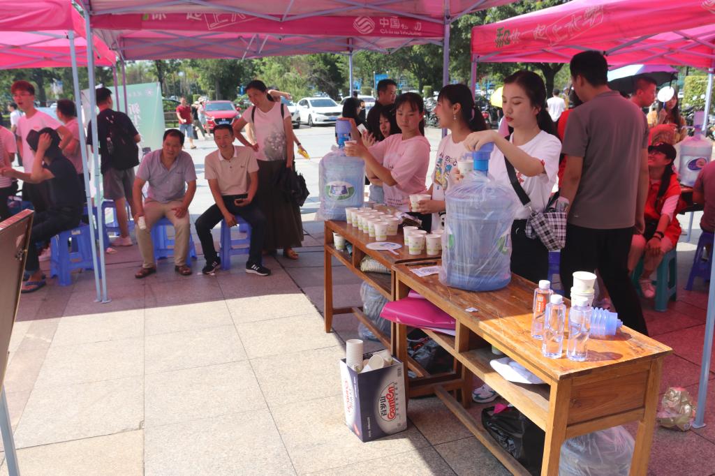 从校门口到达理公寓,映入眼帘的便是一条条红色横幅和顶顶帐篷。达理活动中心更是热闹非凡,物信学院的领导老师们早早来到接待点,翘首期盼;新生们排着队办理注册手续,井然有序;注册点的学长学姐也十分热情,耐心地为他们排难解惑。接待点招待家长的帐篷里熙熙攘攘,学长学姐们不停接水、递水给家长和新生们,送去烈日中的一份清凉。