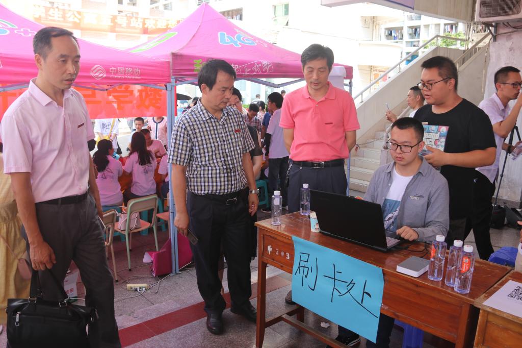 校党委常委、副校长张龙海也来到了我院接待点现场,与同学们亲切交谈,不时询问迎新进展,对今年首次启用的迎新系统进行现场指导。