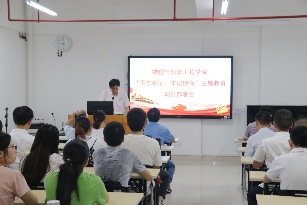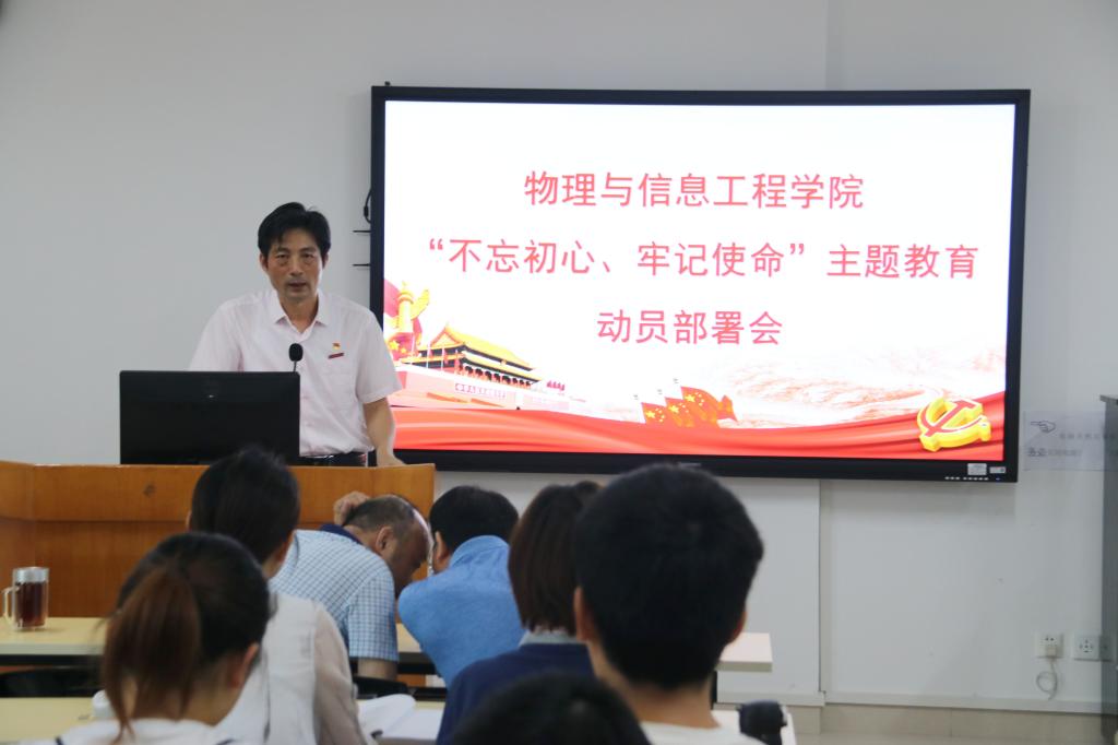 学院党政领导和全体党员要把思想统一到学校党委的工作部署上来,要紧紧围绕学习贯彻习近平新时代中国特色社会主义思想这条主线,聚焦主题教育目标任务和要求,以高度的政治责任感和使命感,以更加务实的作风和有效的举措,抓紧抓实各项工作,确保主题教育取得扎实成效,推进我院办学质量和师生满意度双提升,为新闽师建设,为推动学院各项工作贡献力量,以优异的成绩庆祝新中国成立70周年。