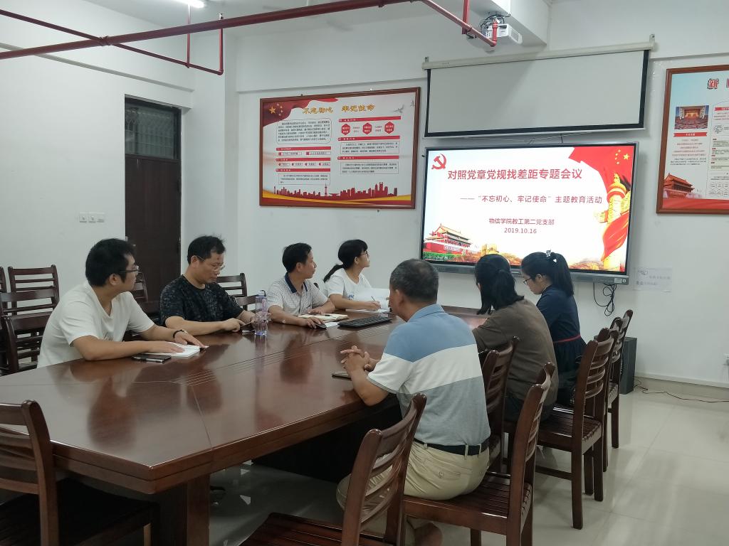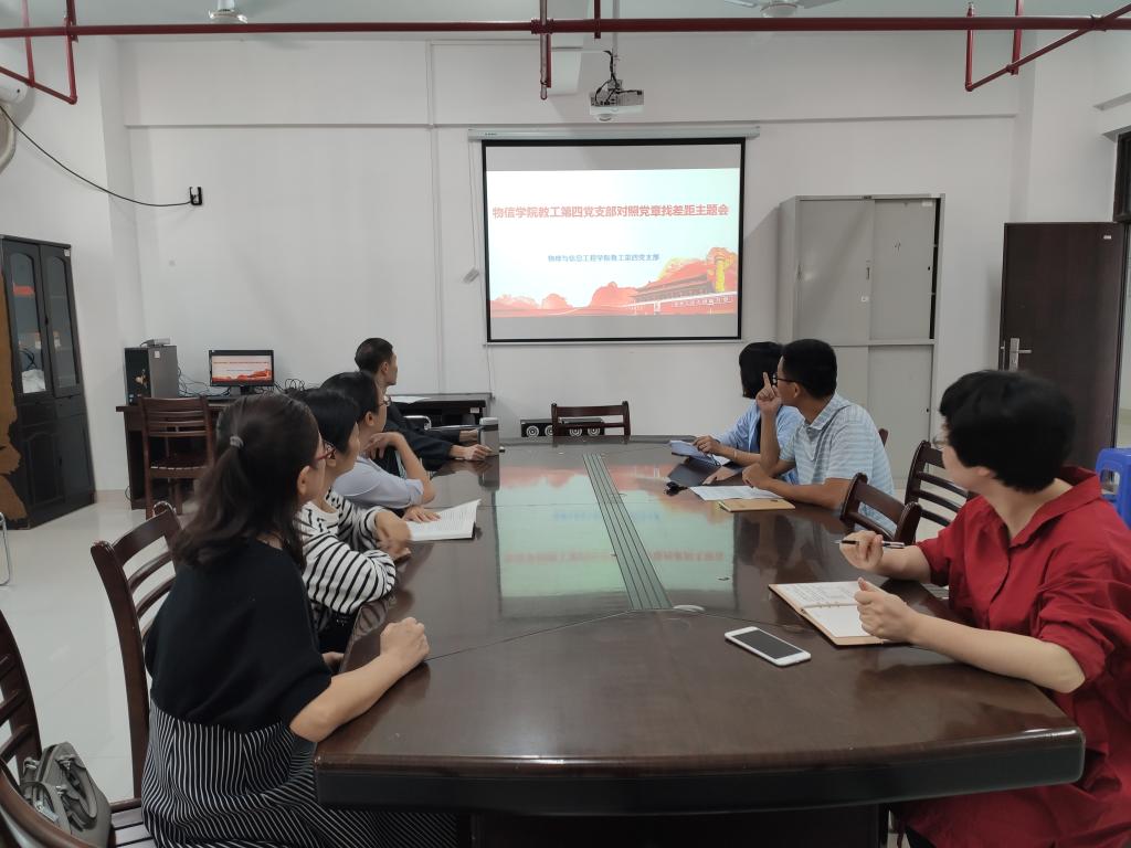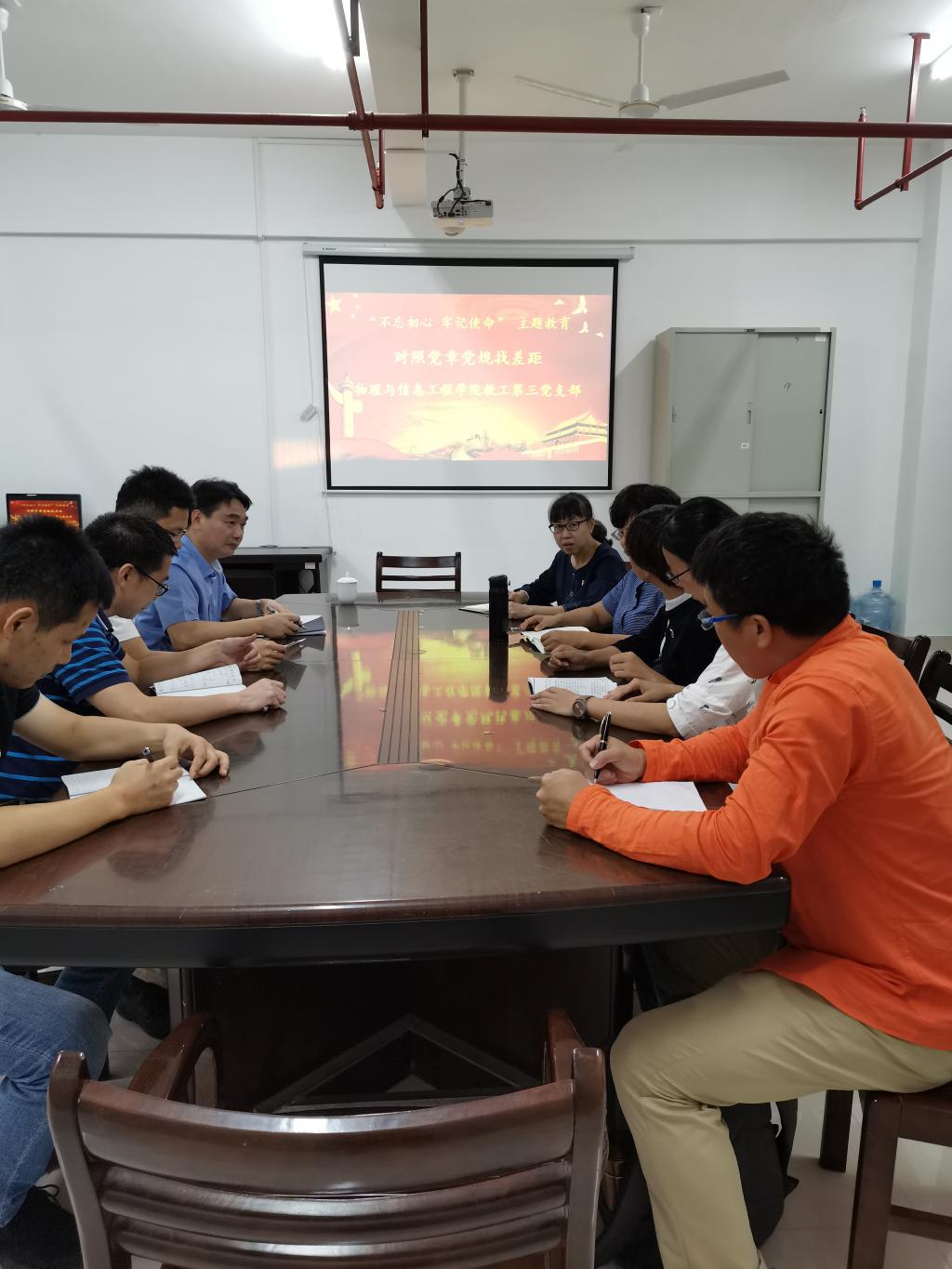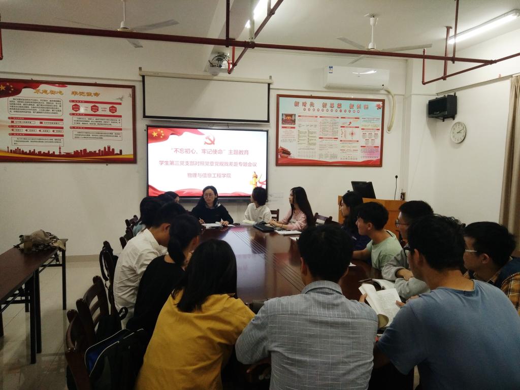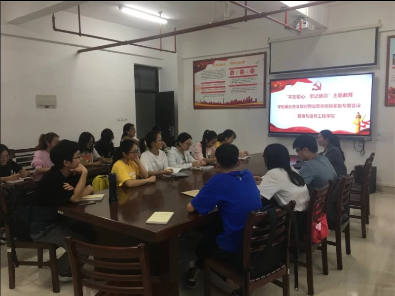 根据学校“不忘初心、牢记使命”主题教育工作安排,物信学院各党组织近期分别召开对照党章党规找差距专题会议,党员同志从党员意识、担当作为、为民服务、遵守纪律、作用发挥等方面找差距和不足。