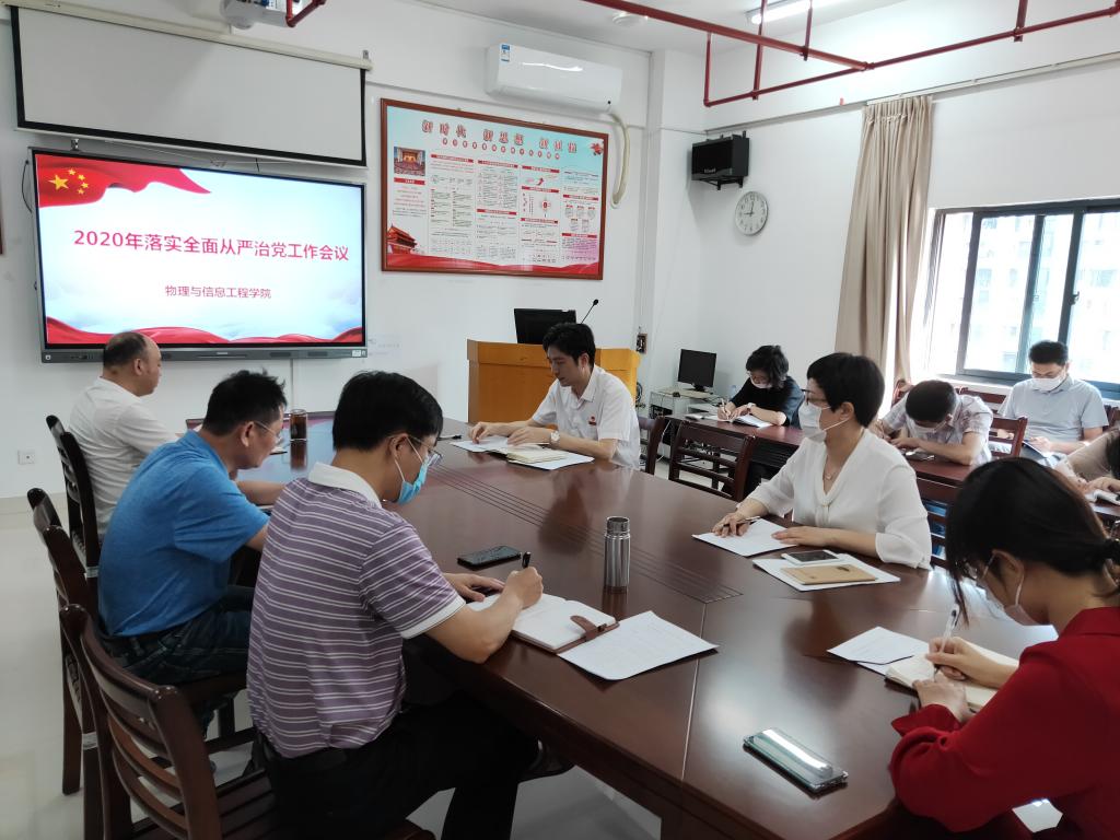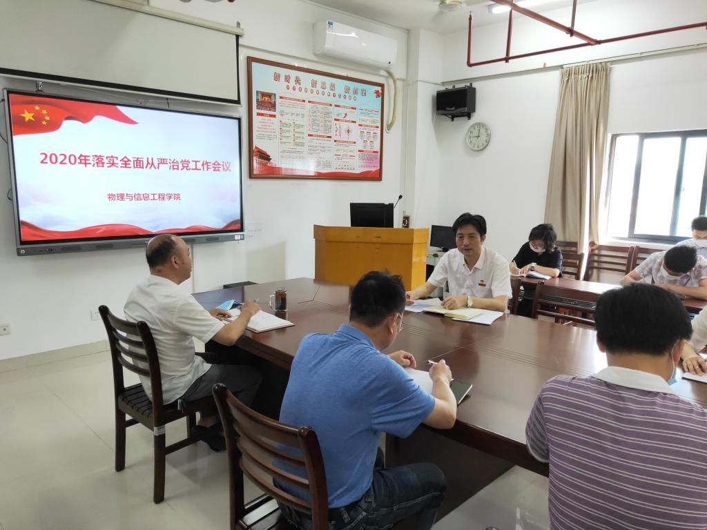 为深入学习贯彻学校全面从严治党工作会议精神,总结2019年学院落实全面从严治党主体责任检查情况及部署2020年党建工作任务,推进党的各项建设,5月25日,我院在科技楼北907召开物信学院落实全面从严治党工作会议,学院党政领导、党委委员、科级干部、党支部书记和辅导员参加会议。