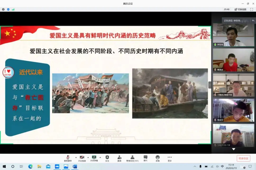 6月19日,yl23455永利集团党委副书记钟发亮教授与yl23455永利集团学生相聚腾讯会议云端,为同学们讲授了一场题为《激扬爱国主义硬核力量 奋进新时代建功立业》的形势政策课。