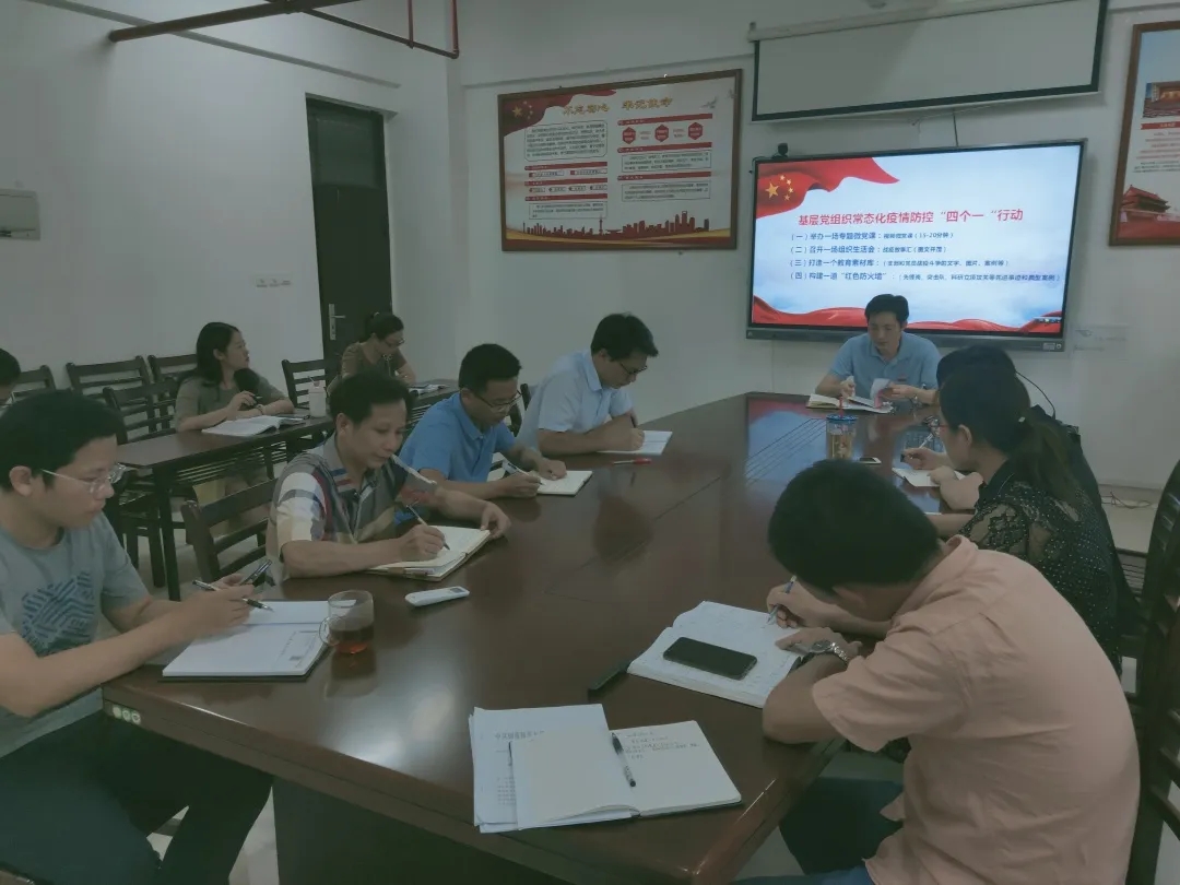 会议还传达部署《关于开展基层党组织常态化疫情防控“四个一”行动的通知》、《关于开展“1+1+N”党建与思想政治工作品牌体系协同建设的实施意见》、《关于加强和改进青年教师思想政治工作的若干意见》等文件精神,会议要求各支部要按照文件要求和学院党委部署,切实行动起来,推动党建与学院中心工作深度融合,提升我院基层党建工作的质量和水平。