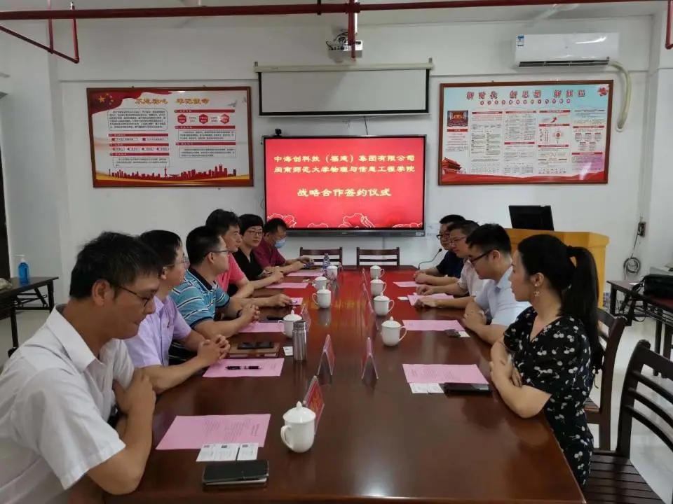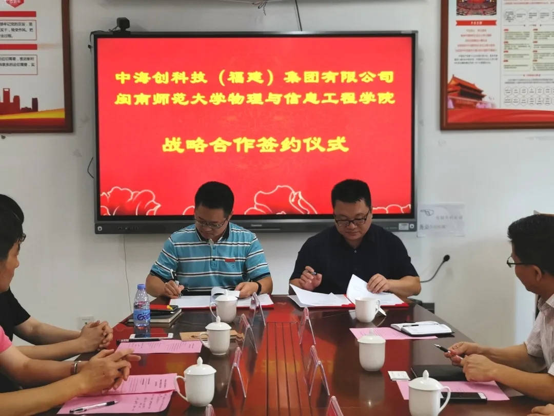 7月17日上午,yl23455永利集团与中海创科技(福建)集团有限公司在科技楼举行战略合作签约仪式。中海创科技(福建)集团有限公司副总裁林泽生博士、物信学院党委书记杨红和、副院长(主持)陈志翔出席仪式并分别致辞。出席签约仪式的还有中海创科技(福建)集团有限公司数字智造事业部相关负责人及物信学院党政领导、相关教师。
