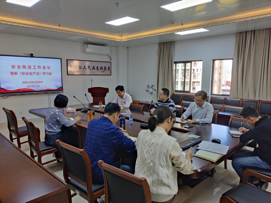11月9日下午,我院在科技楼北907会议室召开安全稳定工作会议暨新《安全生产法》学习会,学院党政领导、相关行政人员出席会议。
