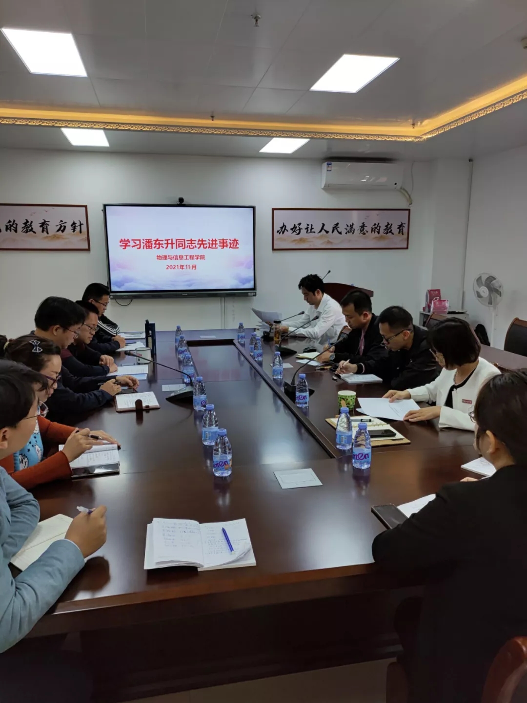 11月19日,我院党委在科技楼北907会议室召开党委理论学习中心组学习会,集中学习“时代楷模”潘东升同志先进事迹,学院党政领导、各党支部书记参加学习会,会议由学院党委书记杨红和主持。