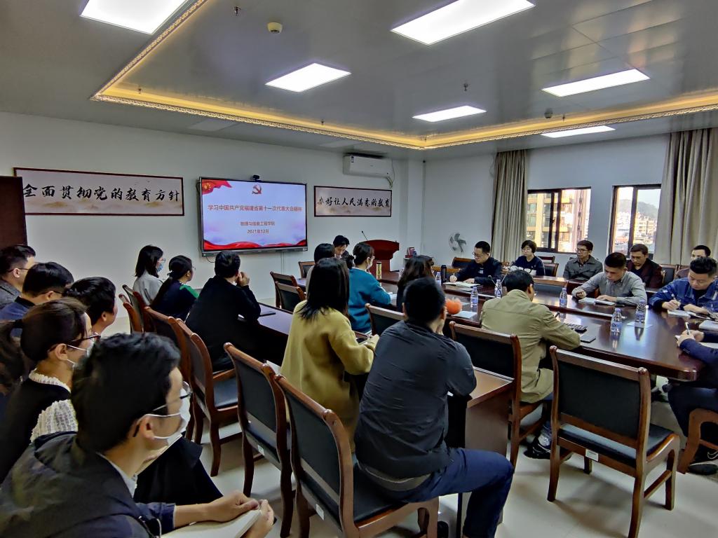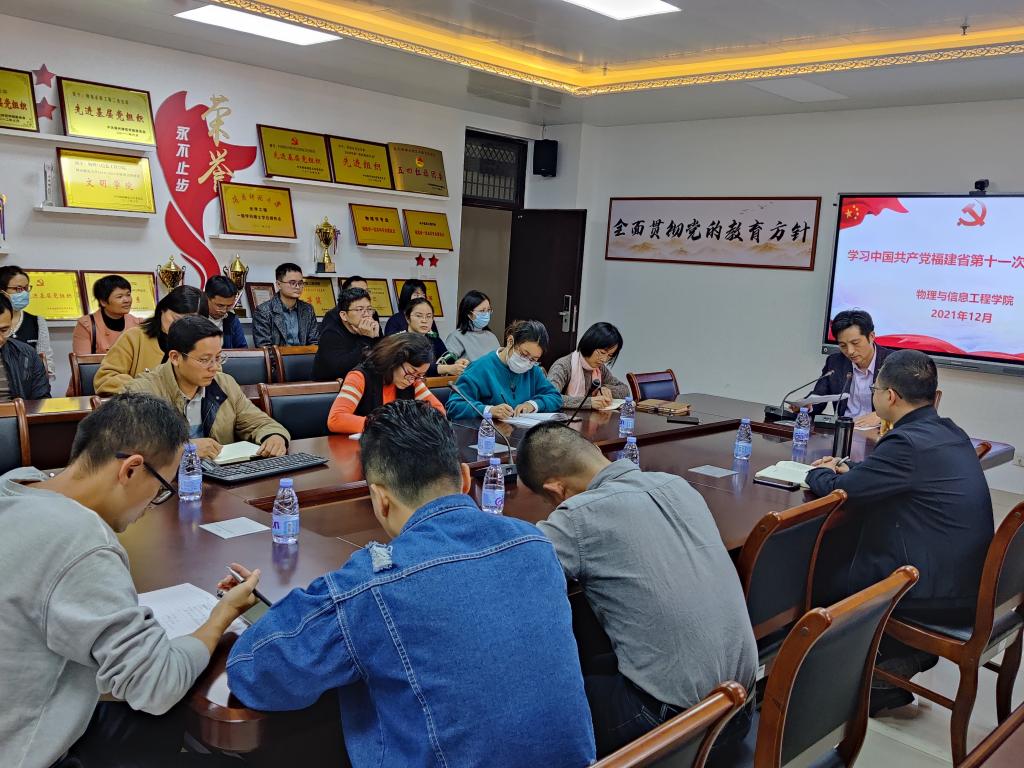 杨红和结合学院实际,就学习宣传贯彻落实省第十一次党代会精神工作提出几点要求:一是要深入学习宣传贯彻,切实把思想和行动统一到省第十一次党代会精神和省委决策部署上来。要发动党员领导干部、各支部书记等深入一线开展精神宣讲,宣讲形式要多样、覆盖面要广,要综合运用线上线下等形式掀起学习热潮,广泛凝聚共识。二是要注重融会贯通,推动学习走深走实走心。要把学习贯彻党的十九届六中全会精神和省第十一次党代会精神作为今后一段时期的重要政治任务,把学习宣传贯彻党的十九届六中全会精神、省第十一次党代会精神同学习贯彻习近平总书记“七一”重要讲话精神和来闽考察重要讲话精神紧密结合,与党史学习教育和开展“再学习、再调研、再落实”活动紧密结合,学深悟透。三是要紧密联系实际,将学习成果转化成推动学院事业进步的强大动力。要把深刻领会落实省第十一次党代会精神,与学院中长期发展规划确定的目标任务相结合,以学科建设引领高质量发展,大力夯实产学研社会服务的基础和平台。要充分发挥基层党组织战斗堡垒作用,充分调动党员积极性,以获批光学工程一级学科硕士点和物理学师范专业认证为契机,强化党建引领学院教学研究与服务地点经济,提升人才培养质量,不断提高广大师生的幸福感和获得感,为谱写福建新篇章贡献智慧和力量。