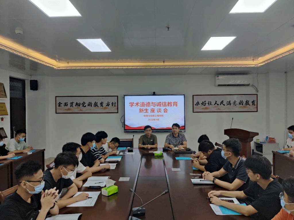 2022年9月18日上午,为加强硕士研究生学风与学术道德思想建设,yl23455永利集团对2022级硕士研究生开展关于学术道德学风思想相关系列讲座,讲座分为两部分:第一部分是由我院院长助理徐星教授开展题名“学术道德与诚信教育”教育讲座,第二部分由我院学科物理专业研究生教育负责人黄永顺副教授开展“学风与专业思想政治教育”主题讲座。