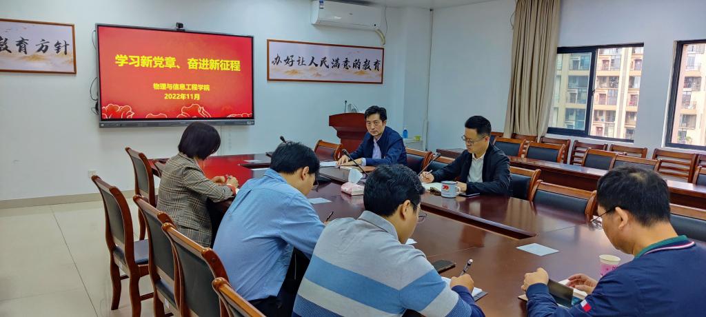 11月25日,我院党委书记杨红和在科技楼北907会议室主持召开学院党委理论学习中心组学习会,专题学习新修订的《中国共产党章程》,学院党委理论学习中心组全体成员参加学习会。
