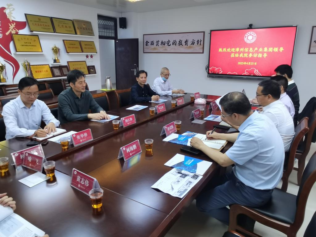2023年4月21日,漳州信息产业集团有限公司罗进章总经理一行赴我院交流座谈。学院领导及相关老师出席座谈会。