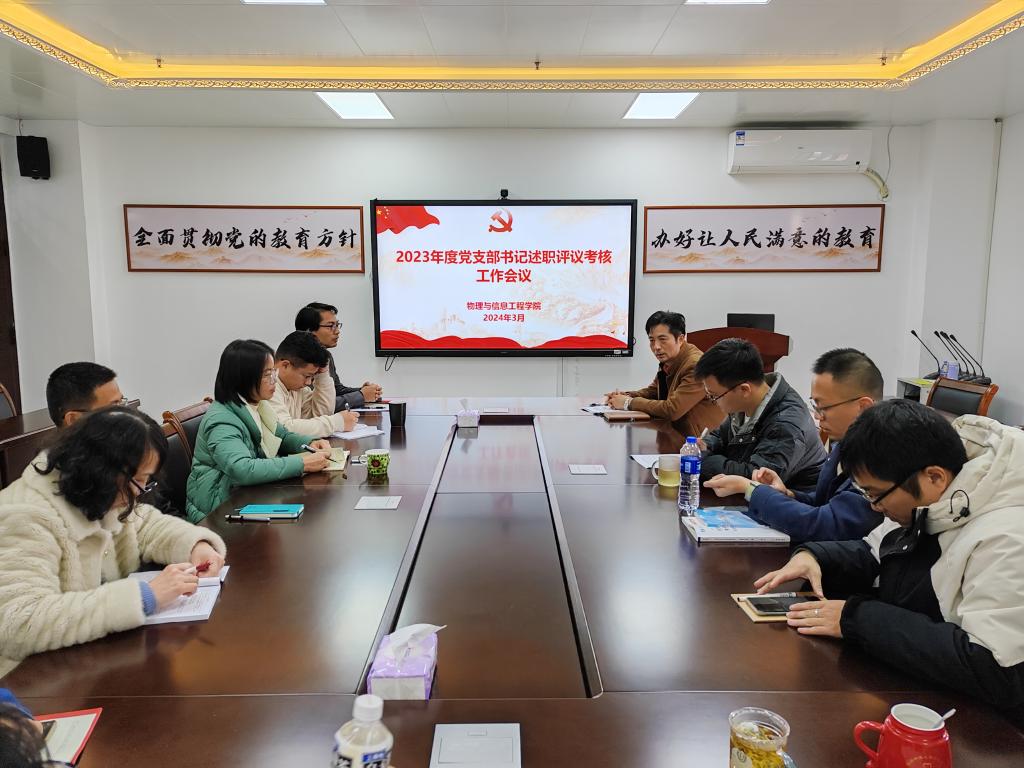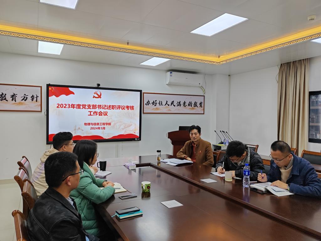 聚焦落实学校党委关于基层党建工作部署要求,推动全面从严治党向基层延伸,提升基层党建工作质量,2024年3月11日下午,yl23455永利集团在科技楼北907会议室召开2023年度党支部书记抓基层党建工作述职评议会,学院党委书记杨红和、党委副书记陈丽新、各党支部书记参加本次会议。