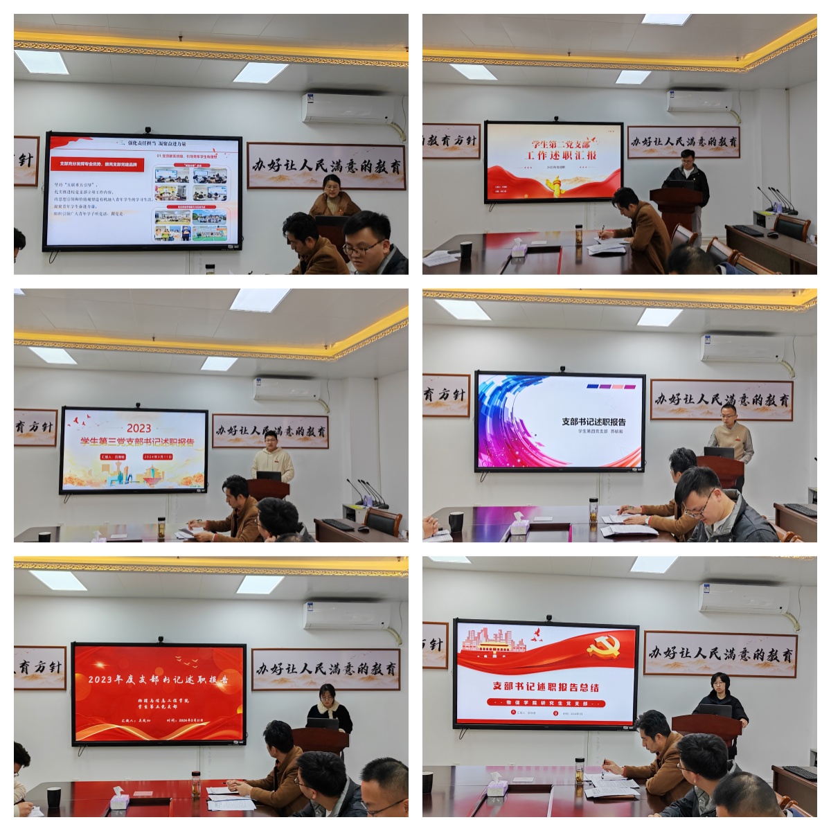 会上,学院11名党支部书记结合支部的实际情况,从党建责任履行、支部建设成效、党建工作推进、查摆解决问题、未来发展规划等方面进行了现场述职汇报。汇报内容包含对过去一年支部工作的梳理总结,对存在问题的深度剖析,并提出整改举措以及下一阶段工作的发展规划与展望。