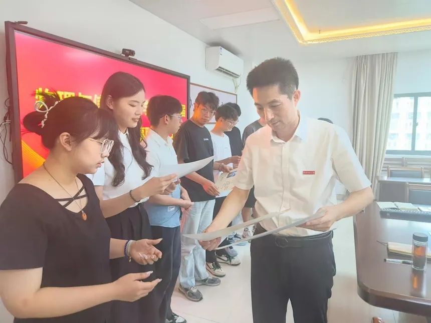 6月20日,我院于科技楼北907举行校友理事聘任仪式,学院党委书记杨红和、副书记陈丽新、团委书记杨超男及毕业班辅导员卢圳彬出席仪式。