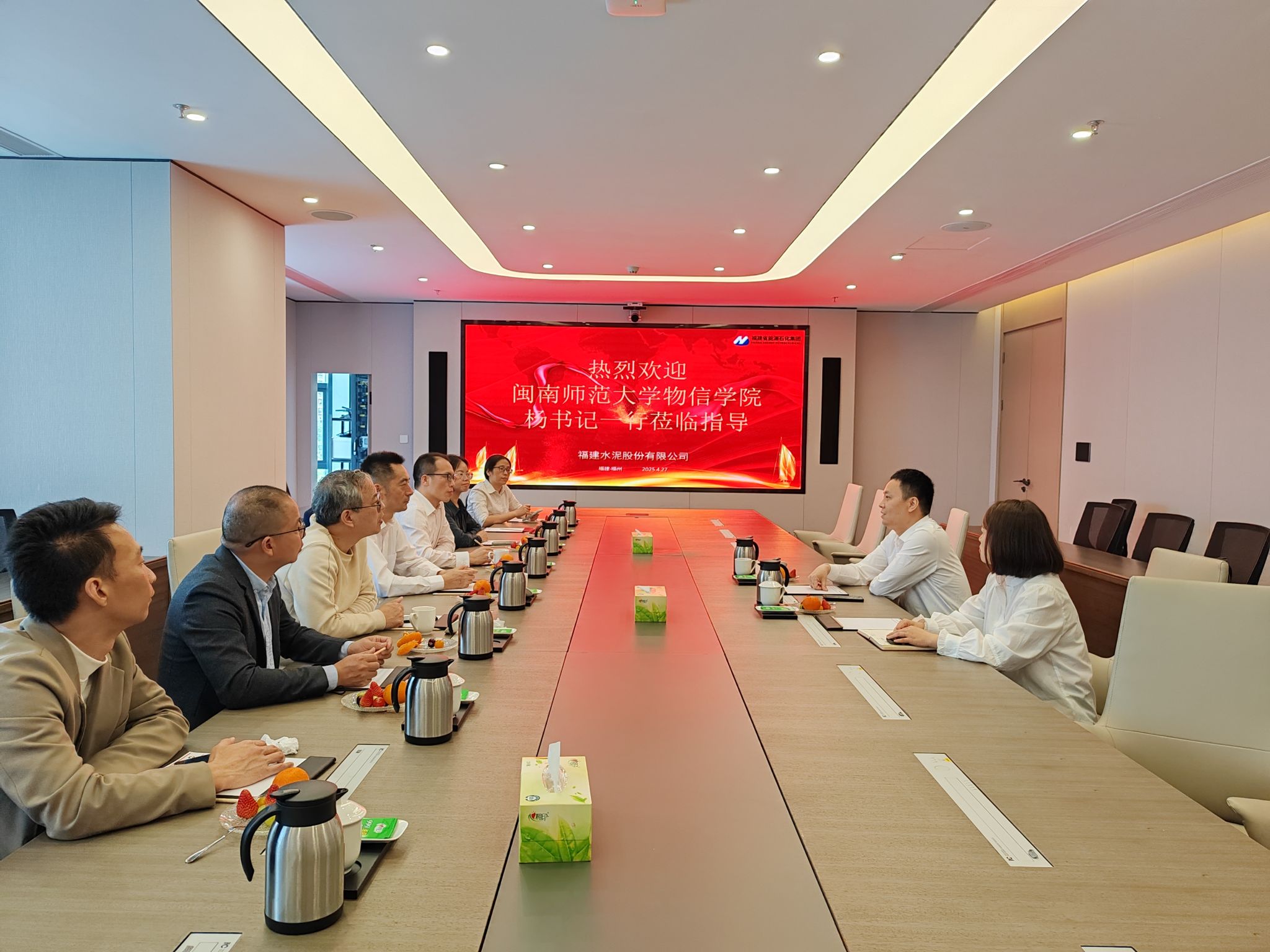 在福建水泥股份有限公司,公司董事长、96级校友王振兴、人力总监金苗对学院一行热情欢迎。座谈会上,杨红和详细介绍了学院当前的专业设置、学生规模、学科发展等状况,展现学院在教学、科研等多方面所取得的成绩以及未来的发展规划。王振兴董事长介绍了公司的整体情况、业务布局以及发展前景。期间,大家一同回忆起青春洋溢的校园生活,王振兴还分享了自己一路从基层逐步成长的宝贵经历以及工作中的深刻感悟,同时表达了对学校和学院发展的坚定支持,彰显出深厚的校友情谊以及对母校发展的高度关注。