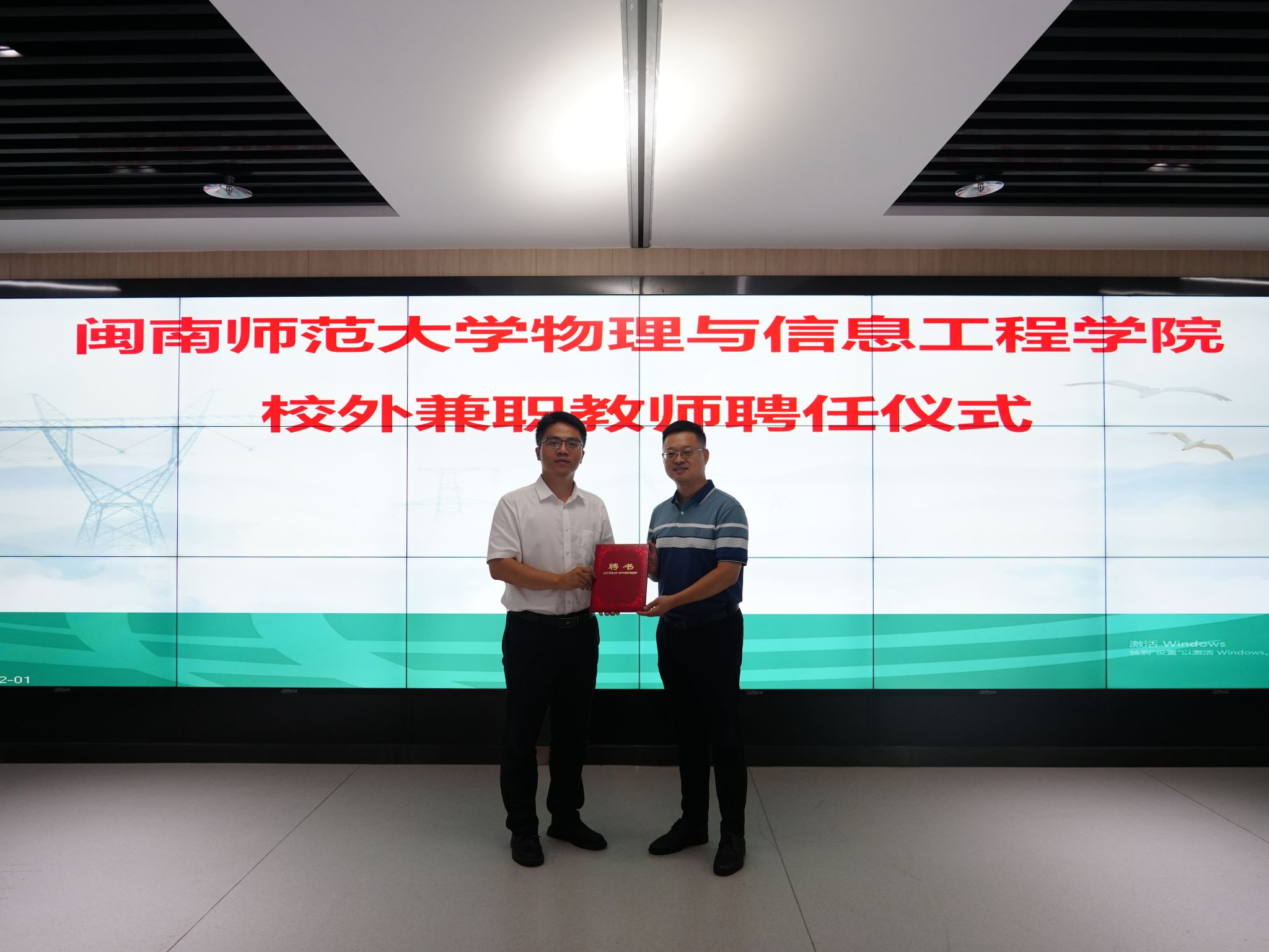随后,陈志翔院长向全国五一劳动奖章获得者、全国职工数字化技术技能大赛无人机项目个人一等奖获得者、国网漳州供电公司输电运检中心副主任陈尉颁发校外兼职教师聘书,期盼企业优秀人才的加入更好助力低空经济人才培养。