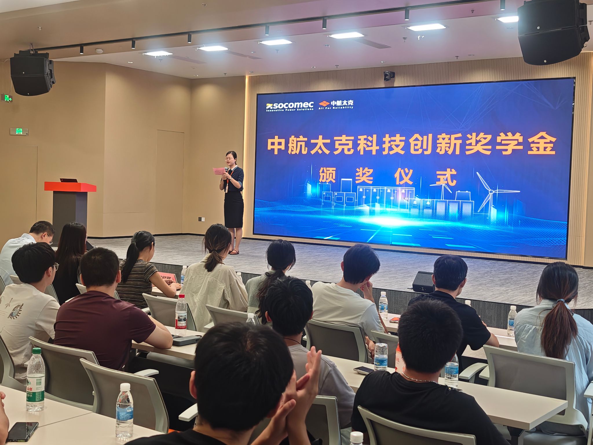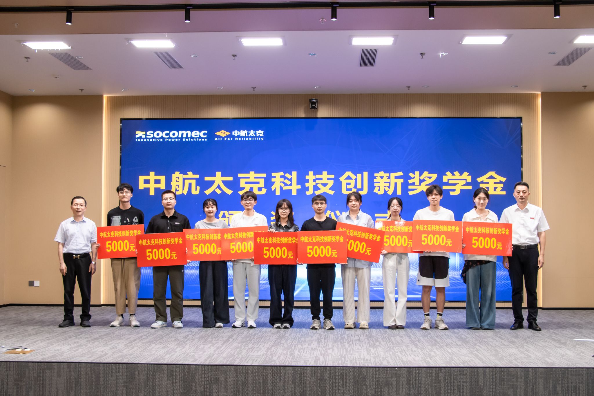 参观结束后,双方于九楼会议室举行了中航太克科技创新奖学金颁奖仪式。中航太克公司副总经理孟超在致辞中感谢物信学院培养的优秀毕业生对公司发展的重要贡献,并指出能源电力行业是国家工业基石,在新能源技术推动下迎来重大机遇,电力电子领域前景广阔、潜力巨大,将成为未来能源系统的核心。公司设立该奖学金,既是对往届毕业生的认可,也期待更多学子加入,共同投身电力电子技术事业。