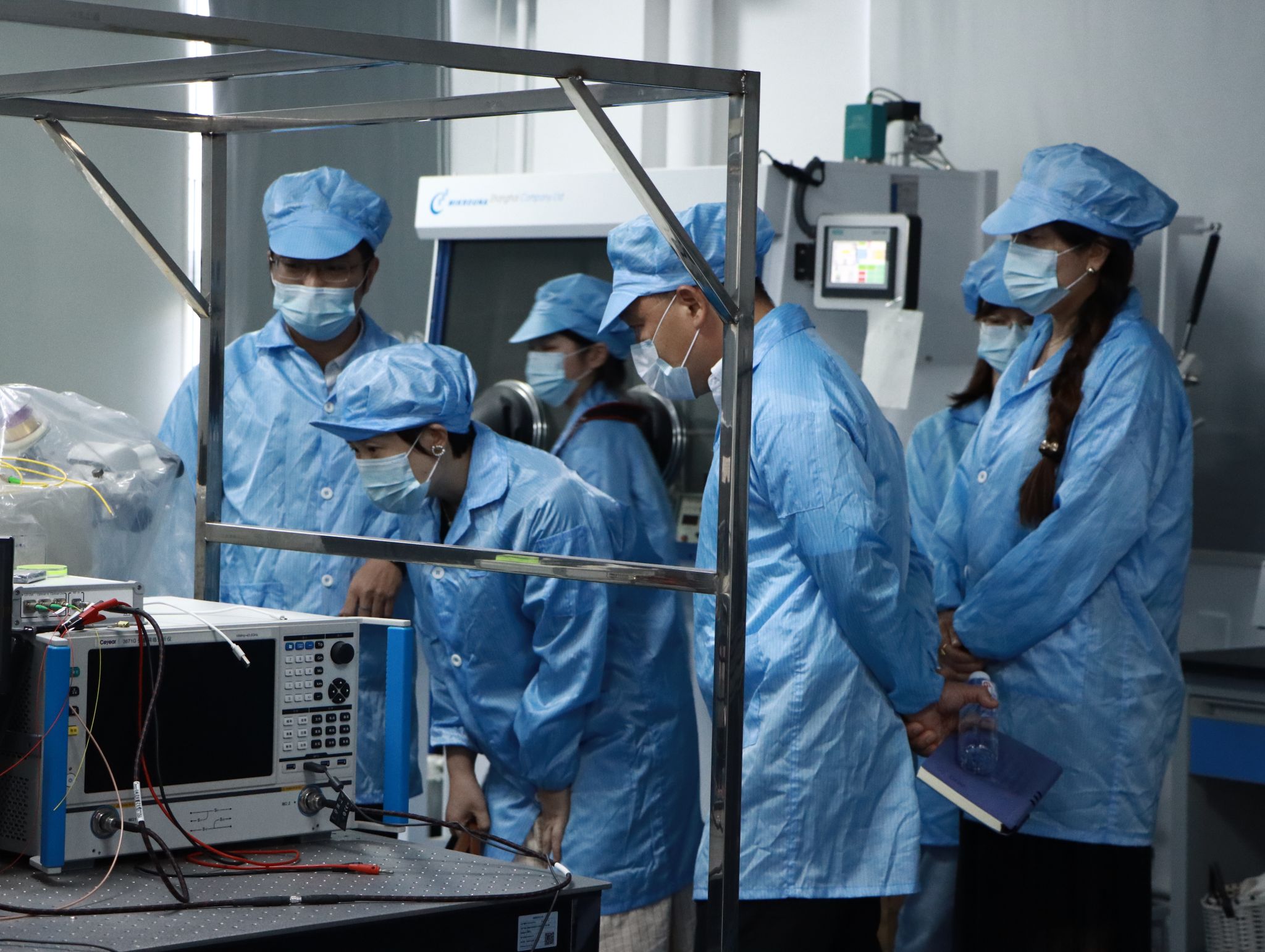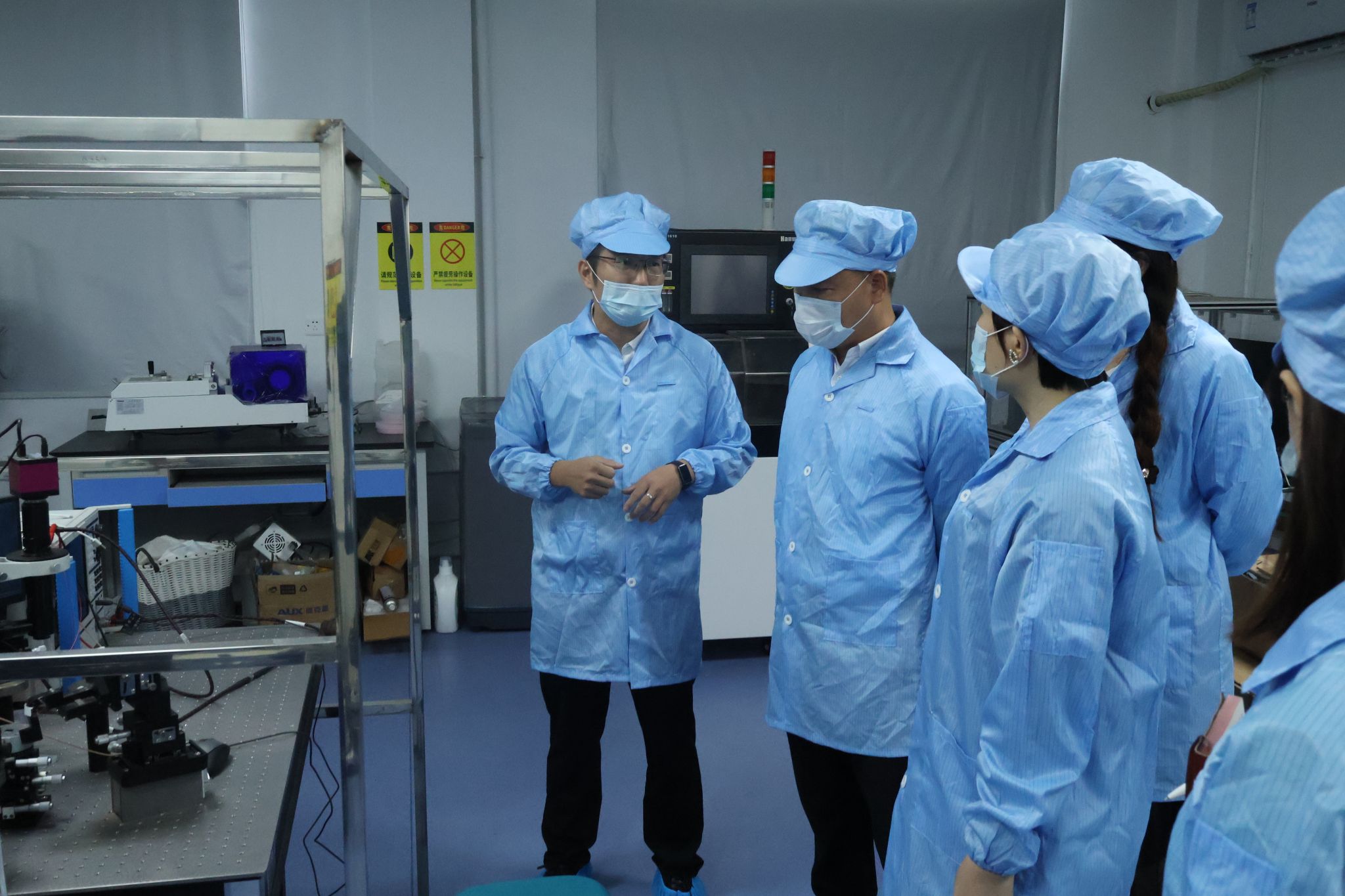 李行贤一行在yl23455永利集团党委书记杨红和、院长陈志翔陪同下,还参观了光场调控及其系统集成应用重点实验室。学院院长助理柯少颖现场向来宾详细介绍了实验室的研究方向、技术成果与人才培养等情况。
