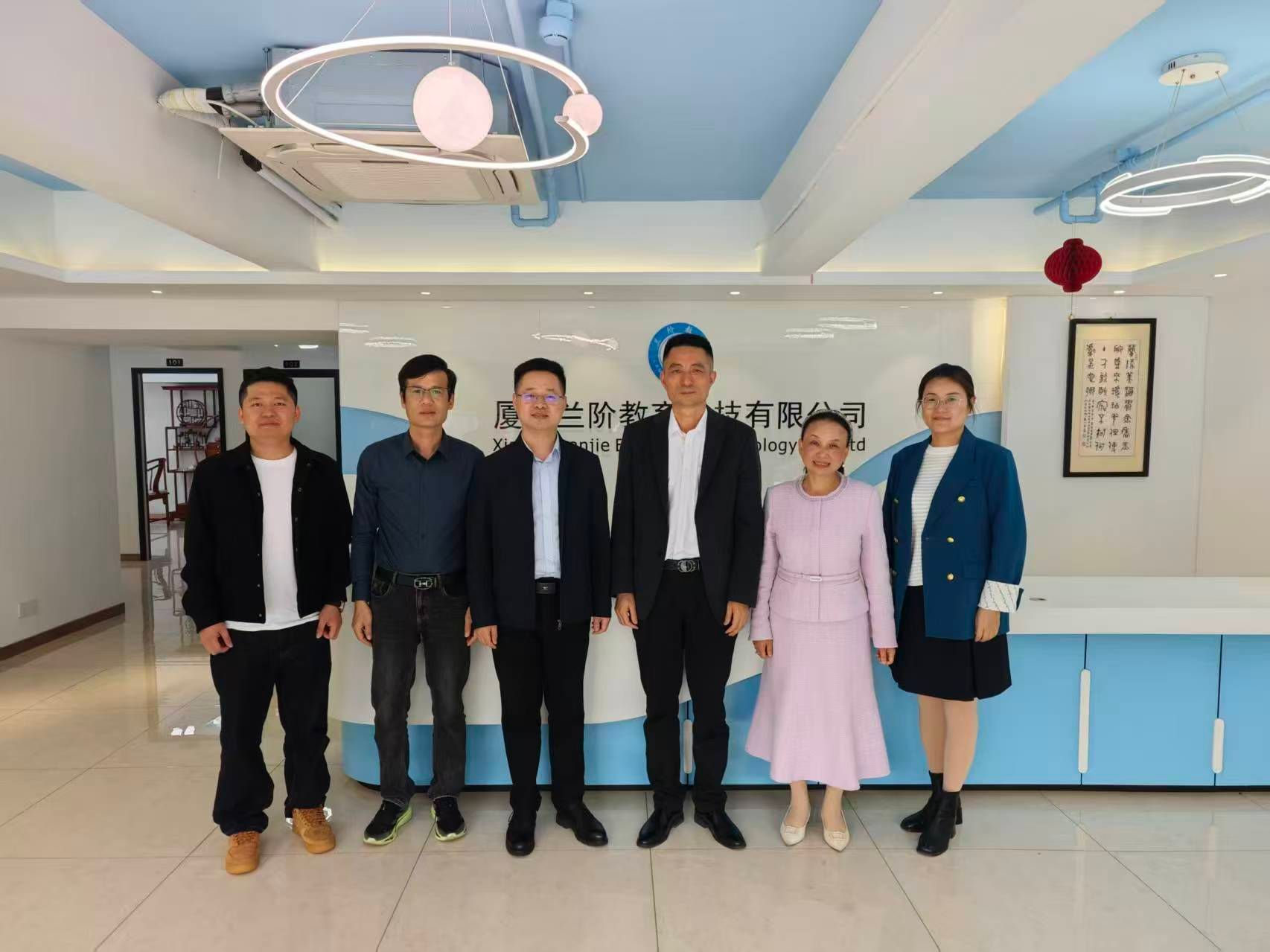 在厦门兰阶教育科技有限公司,学院一行与公司创始人、学院92级校友吴碧兰,以及厦门大学附属科技中学92级校友黄桂元、厦门市豪盛达工贸有限公司09级校友王梁锋亲切座谈。吴碧兰校友介绍了公司发展理念与业务范围,三位校友均表达了心系母校、助力母校人才培养和毕业生就业的意愿。杨红和书记对三位校友表示感谢并简单介绍了学院在学科发展、专业设置、人才培养等方面的发展情况,希望双方加强联系,探索校企合作新模式。
