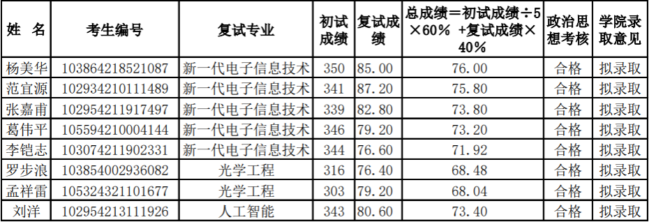 备注:拒绝复试通知、放弃复试资格、拒绝拟录取通知或发送拟录取通知时已经被其他学校拟录取等情况考生本名单均未列出。