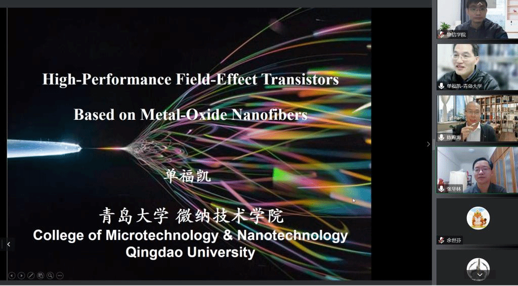 应我院邀请,12月3日晚,青岛大学电子信息学院博士生导师单福凯教授通过腾讯会议作了题为“High-Performance Field-Effect Transistors Based on Metal-Oxide Nanofibers”的报告。相关师生聆听了此次报告,报告由副院长张华林教授主持。