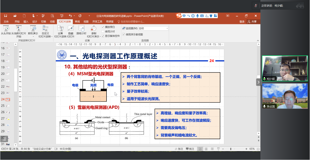 应我院邀约,在2023年9月10日,正值第39届教师节来临之际,吉林大学陈占国教授通过线上为我院师生开展主题为《日盲光电探测器的研究进展》的学术讲座。讲座于腾讯会议进行,由光电子材料与器件集成实验室负责人柯少颖教授主持。