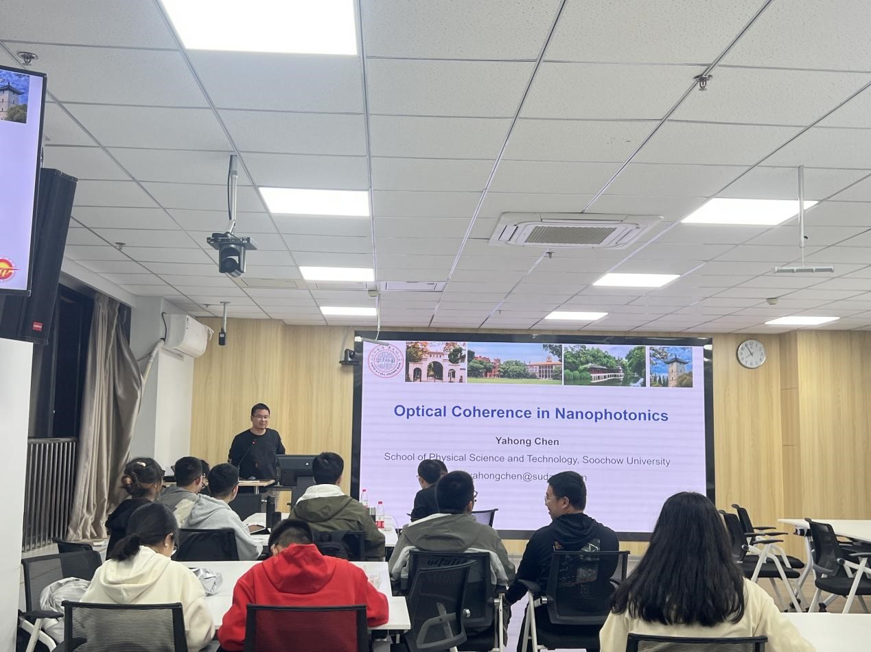 应我院邀请,12月4日,苏州大学光学与光子学研究所所长王飞教授、物理科学与技术学院陈亚红副教授分别为我院光学工程专业研究生和物理学专业本科生做了题为《新型结构光场调控机制及大气湍流传输》和《Optical Coherence in Nanophotonices》的学术报告,报告由物理系系主任、光学工程学科带头人张永涛教授主持。
