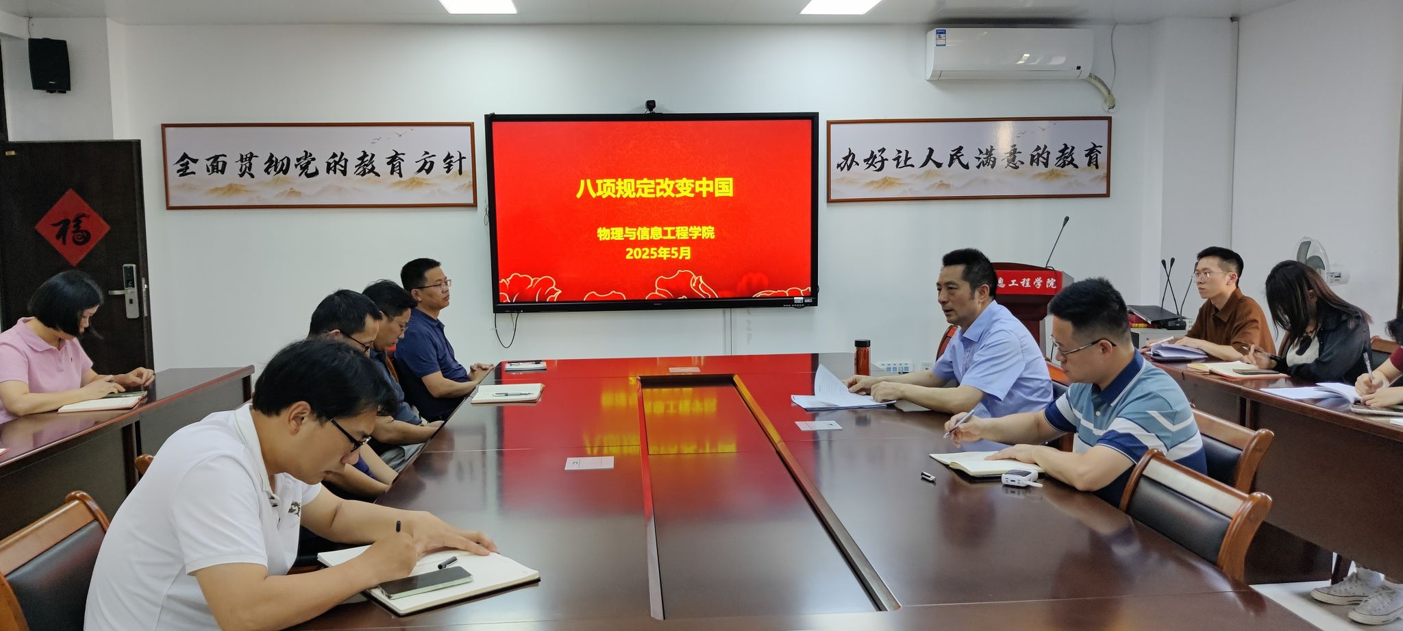 5月13日,物理与信息工程学院召开深入贯彻中央八项规定精神学习教育读书班暨党委理论学习中心组(扩大)学习会,专题学习《党的十八大以来深入贯彻中央八项规定精神的成效和经验》《八项规定改变中国》。学院党政领导、党委委员、党支部书记、科级干部、系主任等参会,会议由学院党委书记杨红和主持。