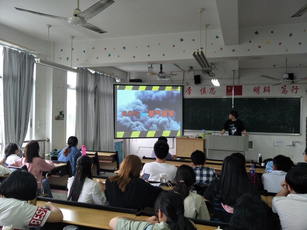 其次,以“5.12防灾减灾日”为契机,组织各个班级学习观看有关防灾减灾的安全教育视频。视频内容包含近几年我国高校发生的安全事故真实案例和火场逃生自救知识技能。因为一件件被忽略的小事而引起的一个个令人痛心的事故,引起了同学们的关注,给同学们敲响了警钟。铭记“熟悉环境,暗记出口;保持镇静,勿乱冲撞;简易防护,蒙鼻匍匐,缓降逃生,滑绳自救”等口诀,增强了同学们的火场逃生自救知识和技能。