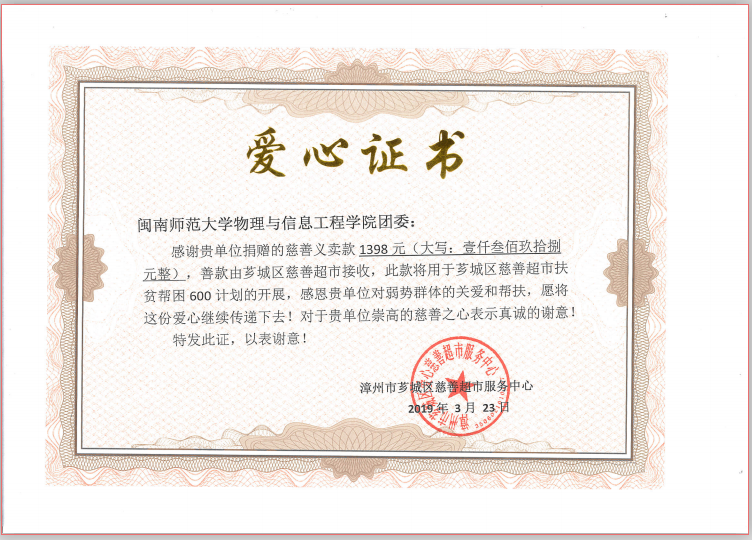 温情三月雷锋季,不忘初心同献爱。此前,我院举办的“情满校园,做新时代的追‘锋’人”志愿汇活动,得到了多家新闻媒体的关注报道。活动通过义卖、捐赠等形式,共筹得善款1398元。活动后,我院把所得善款全部捐给漳州市芗城区爱心慈善超市。3月28日,物信学院联合漳州市芗城区爱心慈善超市,对新桥街道前锋社区与悦华社区的困难群众进行走访慰问,并给他们送去慰问品,把温暖送到困难群众的心中。开展此次慰问活动的经费,即为我院向慈善爱心超市捐赠的善款,走访的15户贫困家庭,均经过社区前期认真摸底核查确定。