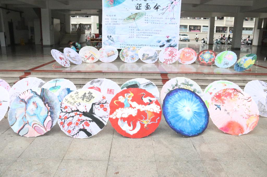 比赛如火如荼的进行,一件件作品相继完成,引人入胜。有“更无柳絮因风起,惟有葵花向日倾”的向日葵,简单大气,显尽蓬勃朝气;有“盘龙云海 ,金鳞岂是池中物,一遇风云便成龙”的飞龙,栩栩如生,跃然伞上;有“凌寒傲骨,逝去的流年,梅花依旧盛开”的淩冽梅图,绘尽梅的坚强与孤傲……一把把纸伞,凝聚了秀美风景,汇集了水墨山水,融合了创作心血。通过亦或色泽浓烈、亦或清新淡雅、亦或行云流水描绘的画伞,向我们一一诉说着它们背后的故事。