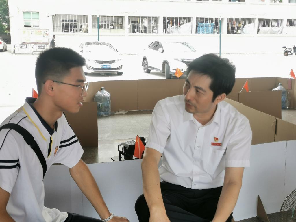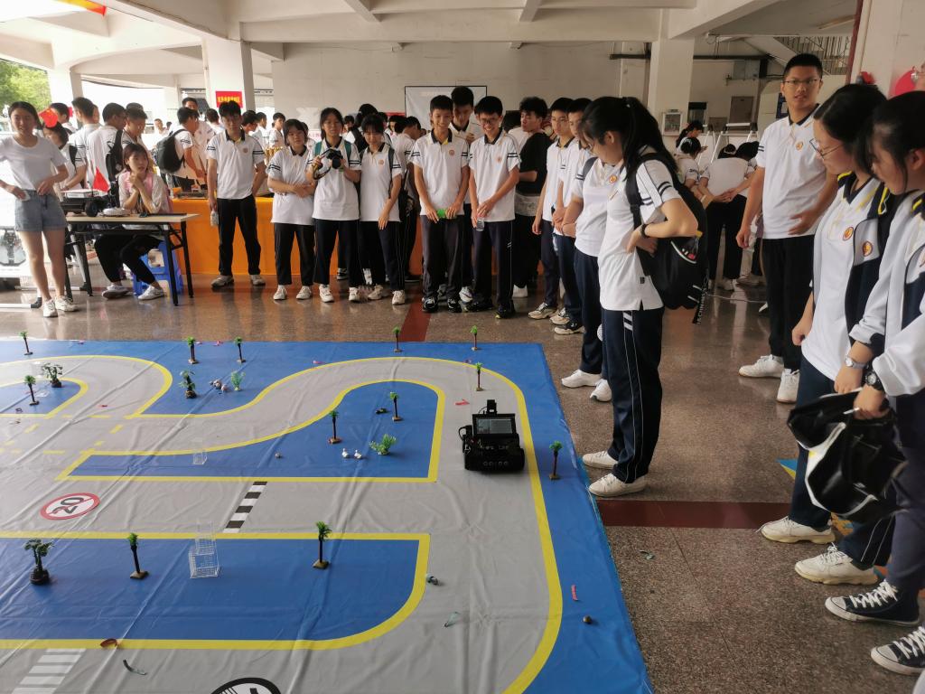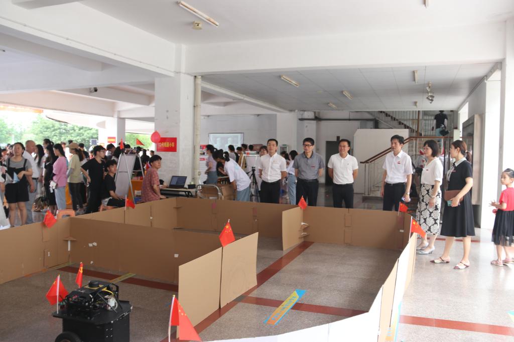 yl23455永利集团附属中学高一创新班的一百名同学们也来到了活动现场,全程参与游园活动,在每一件作品前驻足,向大学生学长学姐们请教科技原理、设计理念,与学院党委书记杨红和、主持工作副院长陈志翔就理想追求、专业选择进行深度交流。