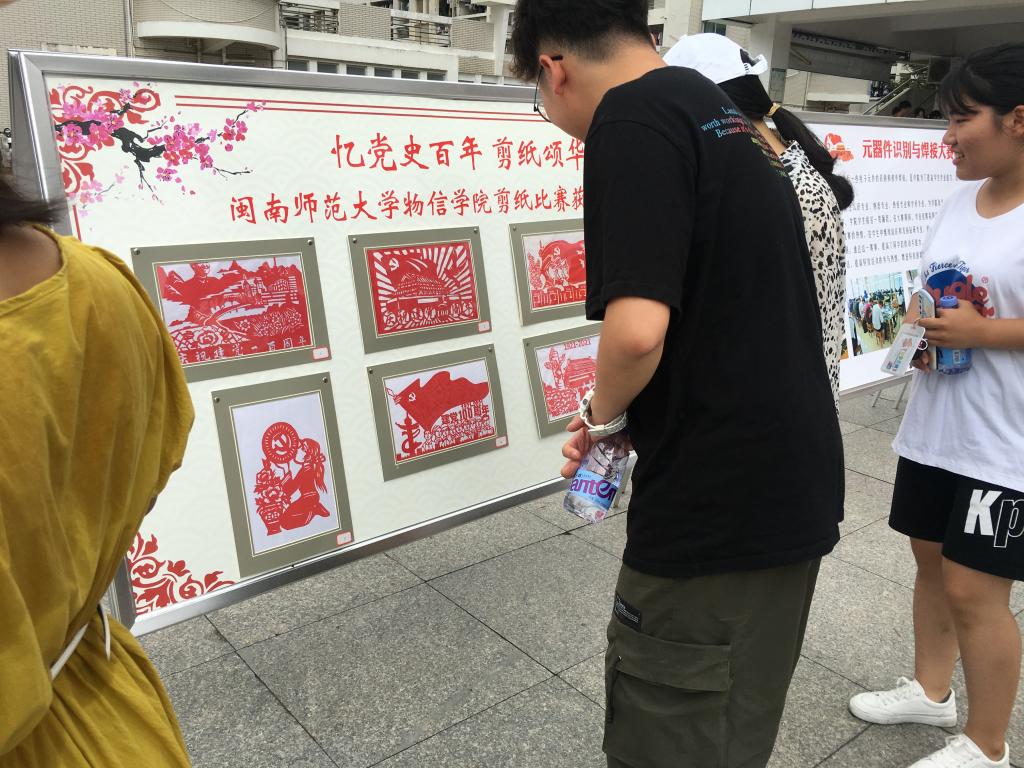活动现场创新创业成果区,17项国家级、省部级大学生创新创业项目,5项学院学科专业特色活动,14幅党史学习教育主题剪纸作品牢牢抓住观众眼球,充分展示了物信学院近两年来大学生创新创业成果。