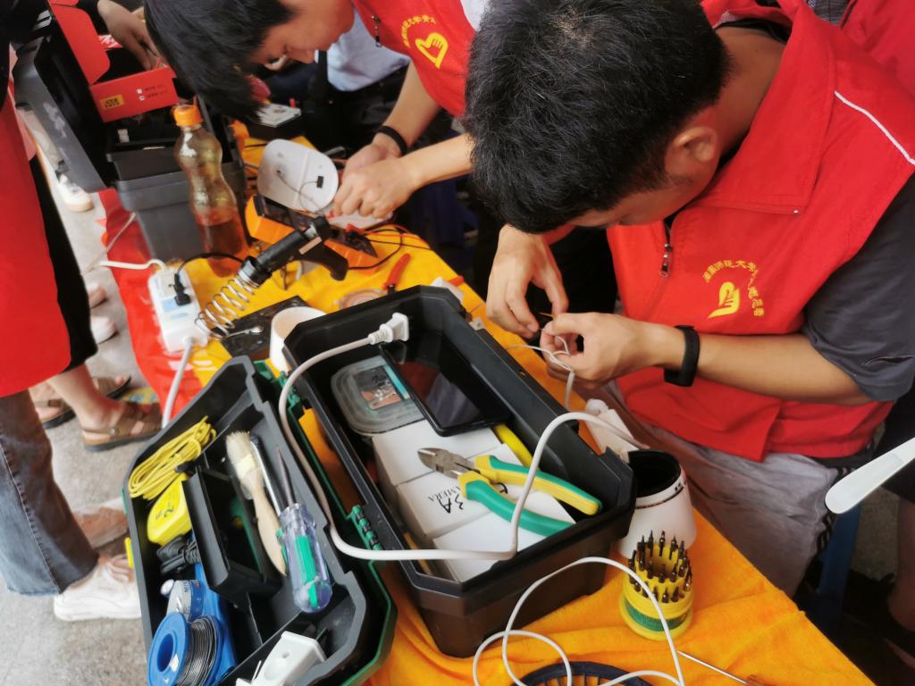 学以致用,“在‘真刀真枪’的实干中成就一番事业。”罢工的电磁炉、小风扇、台灯......在志愿维修区被义务维修队的同学们妙手回春!他们以修旧起废之手,将其整旧如新,立足专业“为民办实事”,用所学回馈社会,诠释了如何更好地践行党史学习教育。